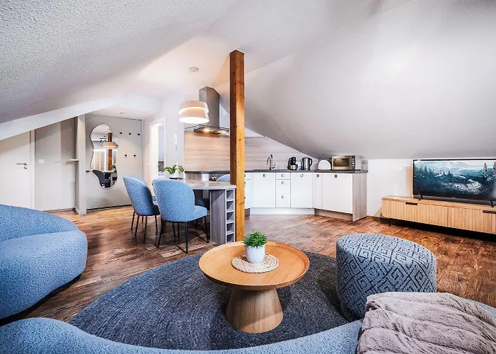 The 73 m² Edelweiss Appartements 'Ettelsberg' Deluxe Mit Hotelanbindung, Saunalandschaft Und Meinecardplus Willingen is located in Willingen, 3.6 km from the Hoppern-Kopf, and pampers guests with a Jacuzzi and a sauna. If you are travelling to Willingen to go skiing, this 2-bedroom apartment offers a ski school, a ski storage room, and ski hire.